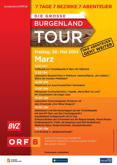Die große Burgenland Tour 2014 macht am 30.5.2014 im Obstgarten Rohrbach bei Mattersburg Station und der Verein Wildbienengarten ist auch dort dabei. Es wird einen Infostand geben.
